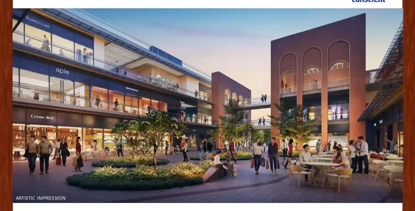 Positioned on the Golf Course Extension Road, Conscient SOHO High Street Retail Shops at Sector 62 Gurgaon is a noteworthy commercial project, entailing 190 high street retail shops, complemented by 240 residential units above, catering to a dynamic and densely populated community of over 15,000 families within walking distance.