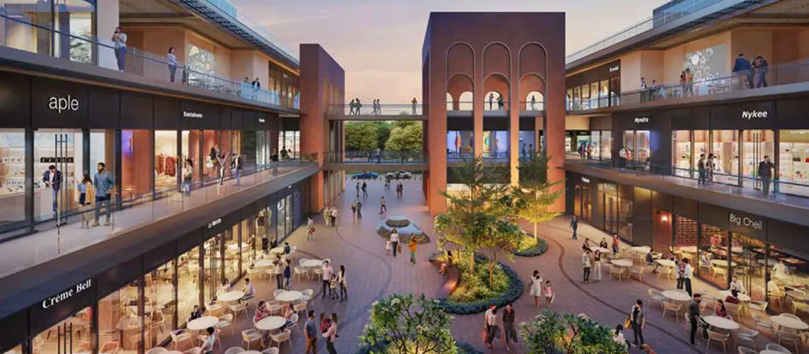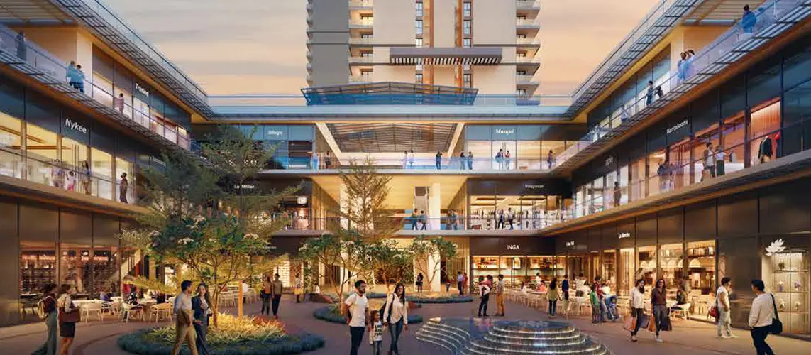 This property emphasises sustainability and holds the IGBC Platinum pre-certification, promoting an eco-friendly environment. Drawing inspiration from Spanish colonnade architecture, it features airy walkways, shaded seating areas, and landscaped spots for relaxation.